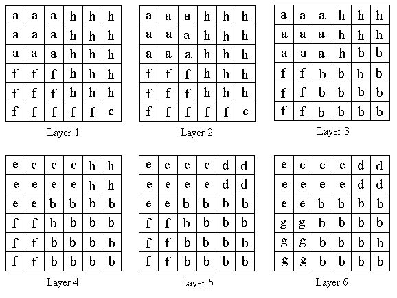 Here is a solution to the second problem using eight pieces that is due to R.F. Wheeler. It appeared in Eureka in 1950. Piece a is the 3×3×3 cube. Pieces b and c make up the 4×4×4 cube. The rest of the pieces form the 5×5×5 cube as shown in the second diagram below.
